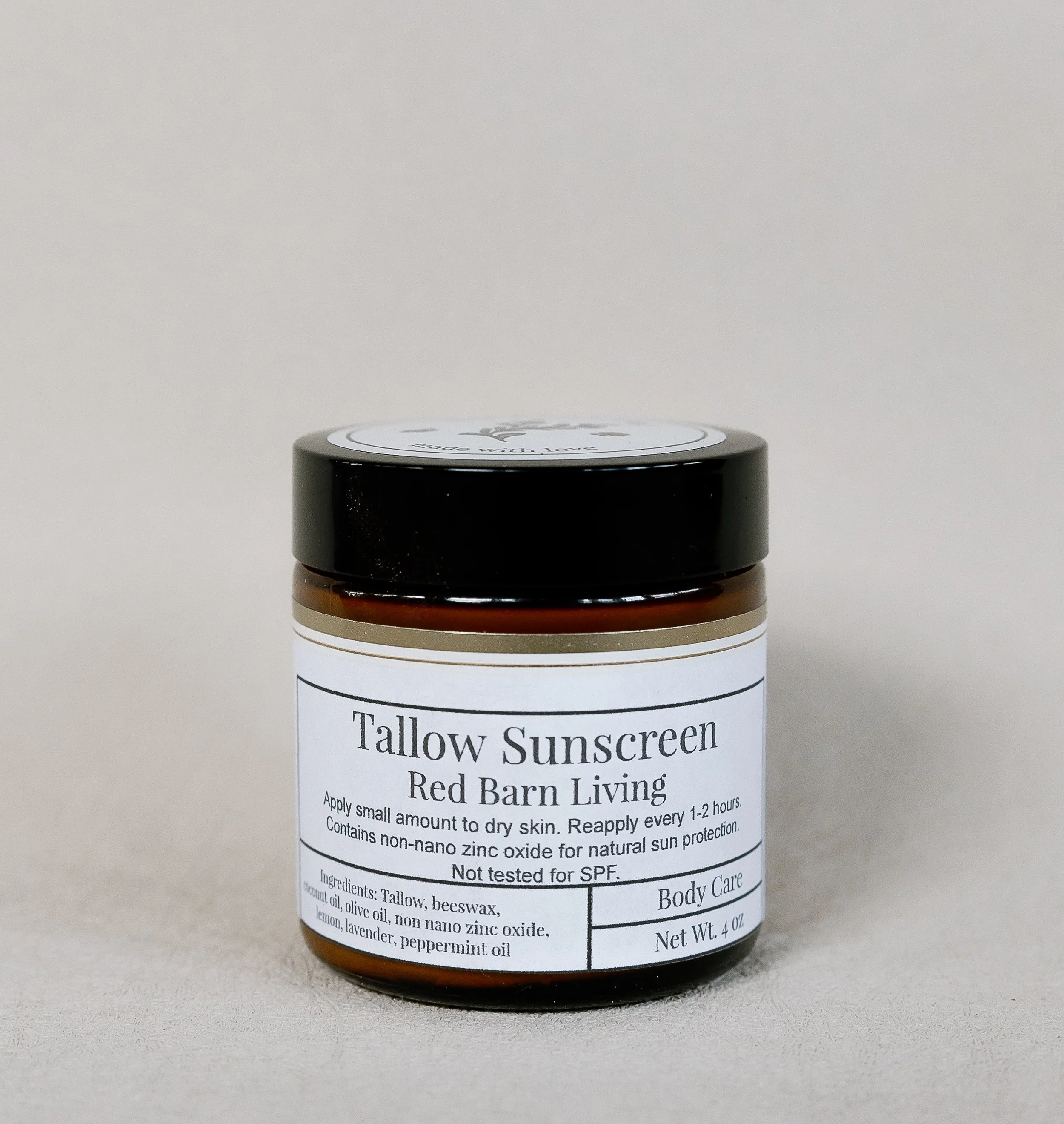 Shop Categories: All Health & Wellness Skincare & Beauty All | Health & Wellness | Skincare & Beauty | Whipped Tallow Face Balm $20.00 Tallow Hormone Balancing Butter $25.00 Tallow Body Butter $25.00 Tallow & Honey Body Wash $25.00 Whipped Tallow Sugar Scrub $15.00 Pumpkin Spice Whipped Tallow Sugar Scrub $15.00 Tallow Deodorant $15.00 Tallow Sunscreen $25.00 Tallow Lip Balm $10.00 The Eye Elixir $30.00 Brow and Lash Growth Serum $18.00 Hair Oil $30.00 Magnesium Spray $16.00 Seaside Sandalwood Perfume Oil $20.00 Golden Amber Musk Perfume Oil $20.00 Nature's Sauvage Perfume Oil $20.00 Wild Lavender Sage Perfume Oil $20.00 All Natural Room Spray $15.00 All Natural Hand Soap $12.00 Red Barn Joint & Muscle Rub $15.00 Anti Fungal Salve $18.00 Lemon Balm Tincture $15.00 Oregano Tincture $15.00